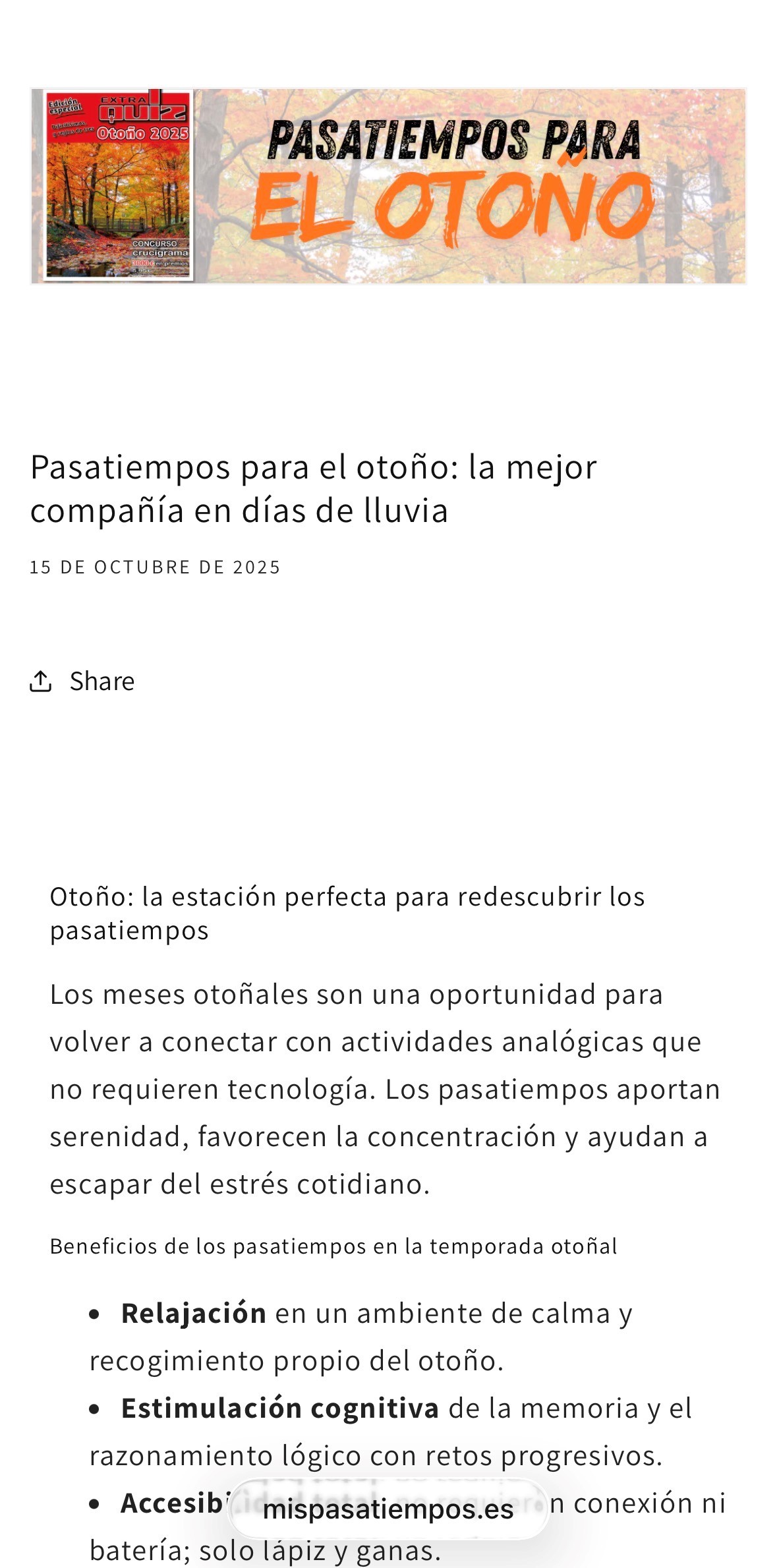 Mis Pasatiempos est la boutique en ligne n°1 du Braintainment en Espagne, avec l’offre la plus complète d’abonnements et de magazines de jeux de réflexion.