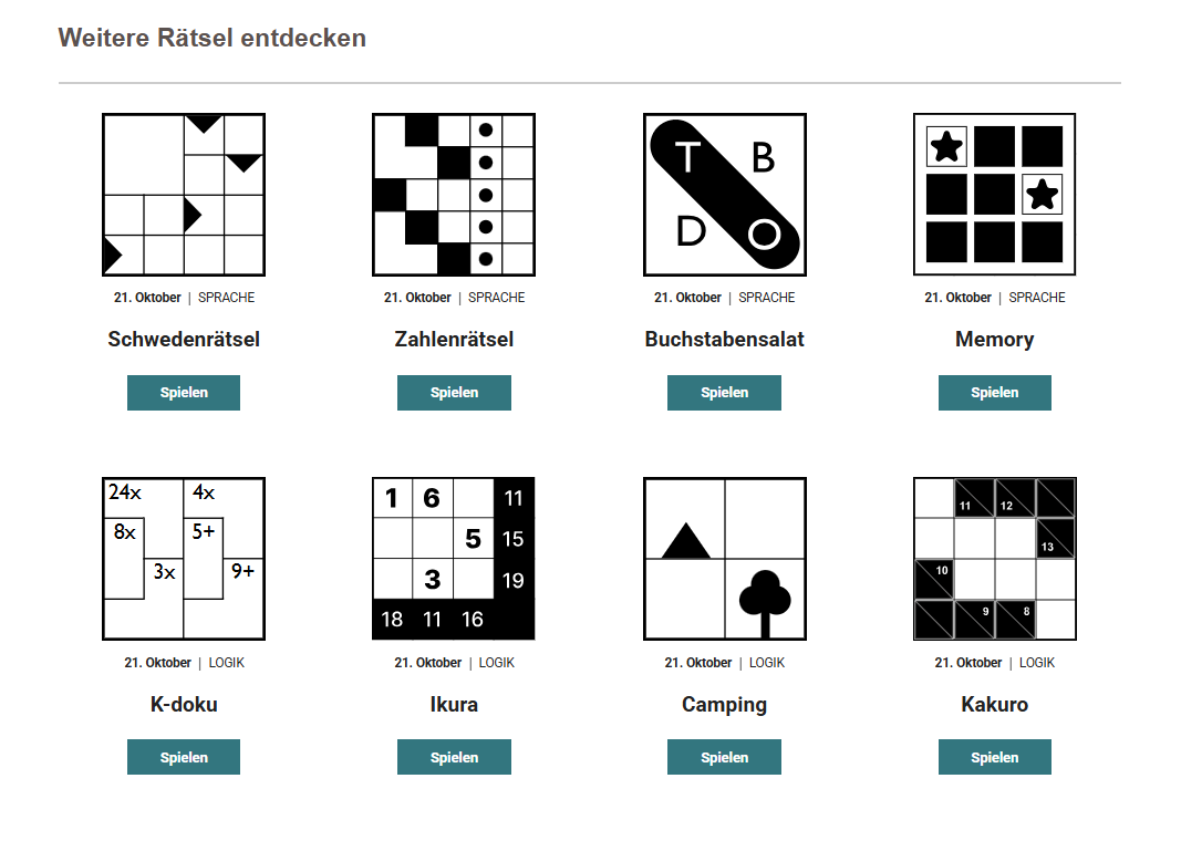Une sélection dynamique de mots croisés, sudokus et autres énigmes, renouvelée de manière hebdomadaire