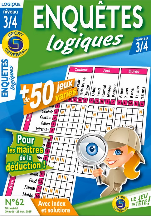 Avec plus de 60 ans d’expertise, Sport Cérébral propose 160 titres et 14 types de jeux pour tous les niveaux